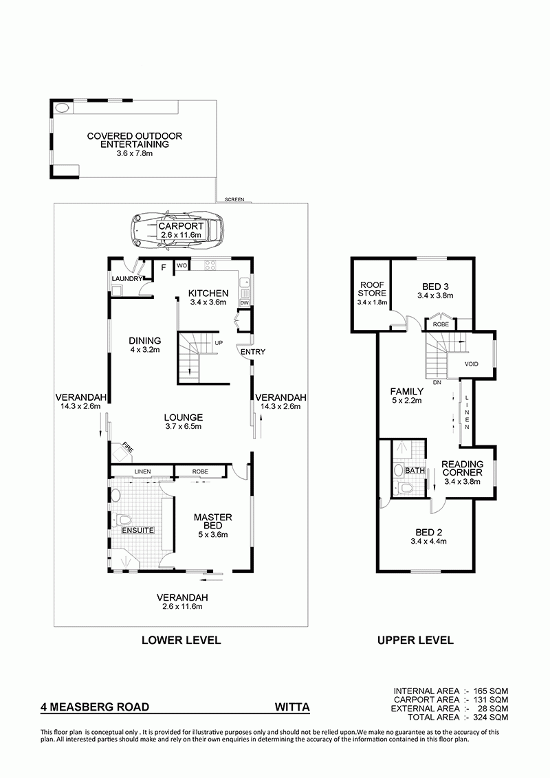 The ground level has the spacious main bedroom with huge ensuite while upstairs you'll find 2 more bedrooms, the main bathroom, a reading nook and separate small living area.