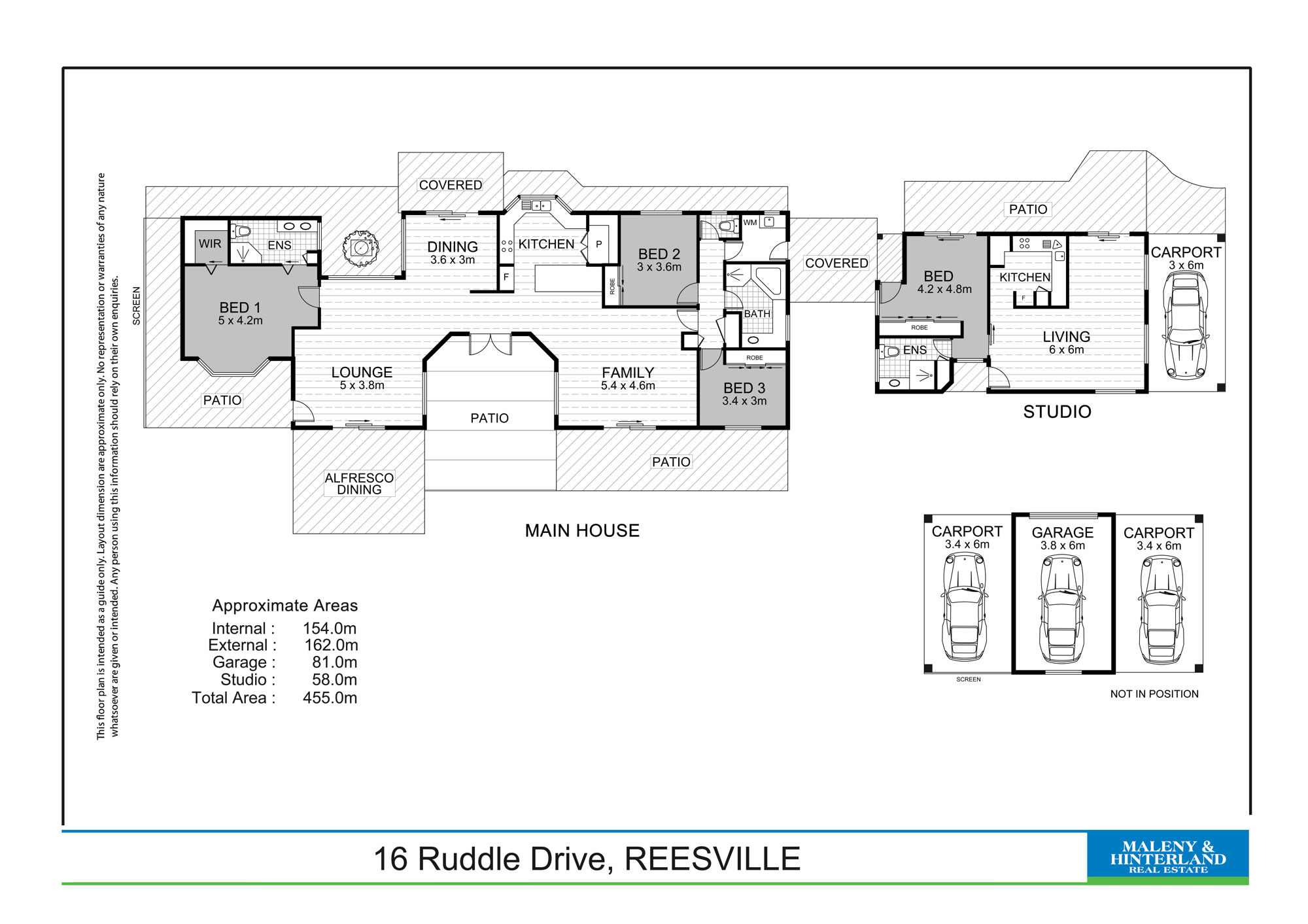 • Two generous guest bedrooms with built-in robes serviced by the main bathroom