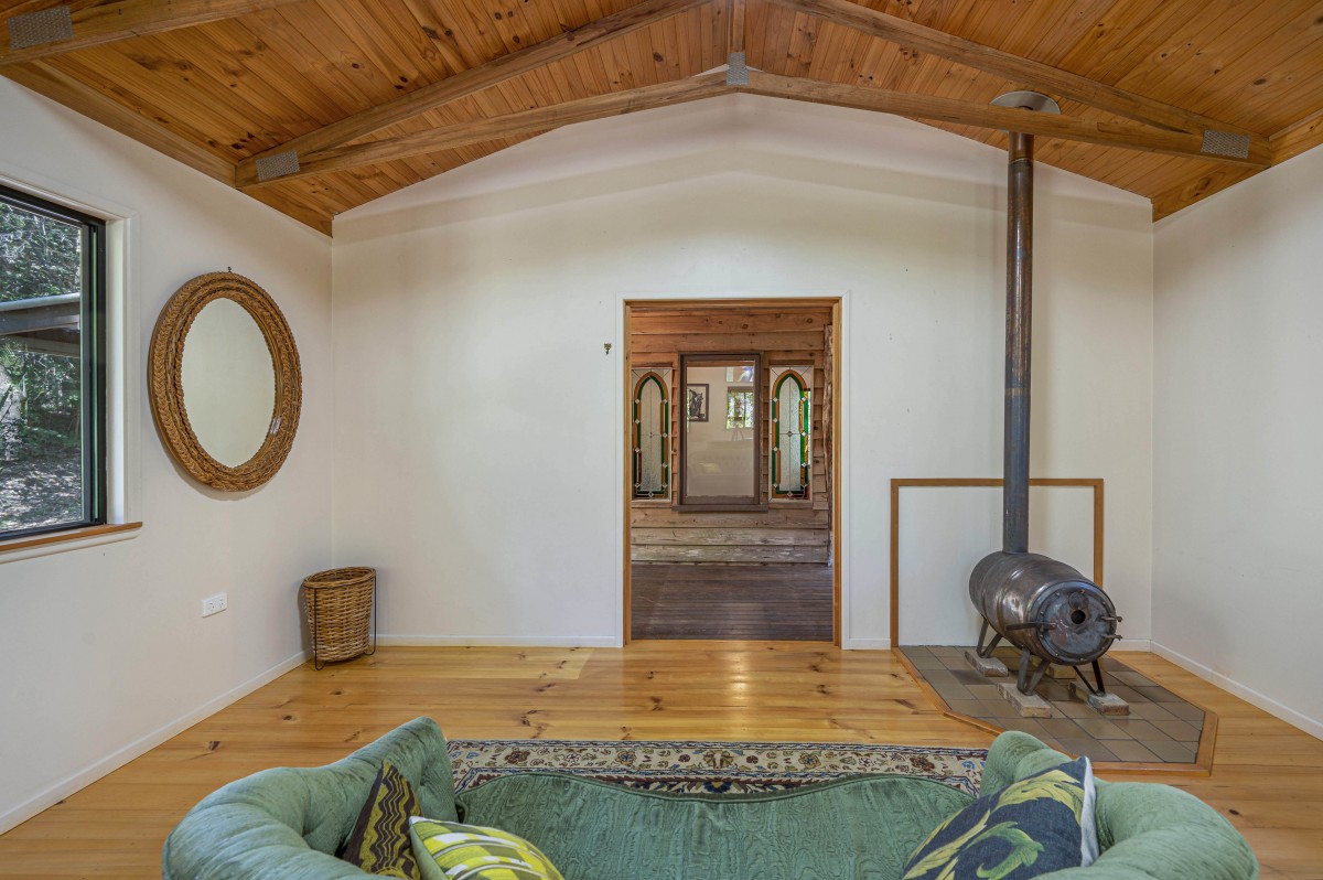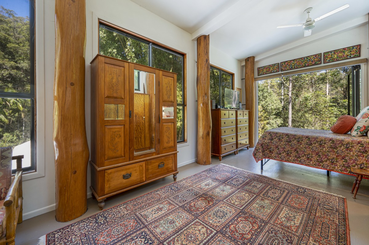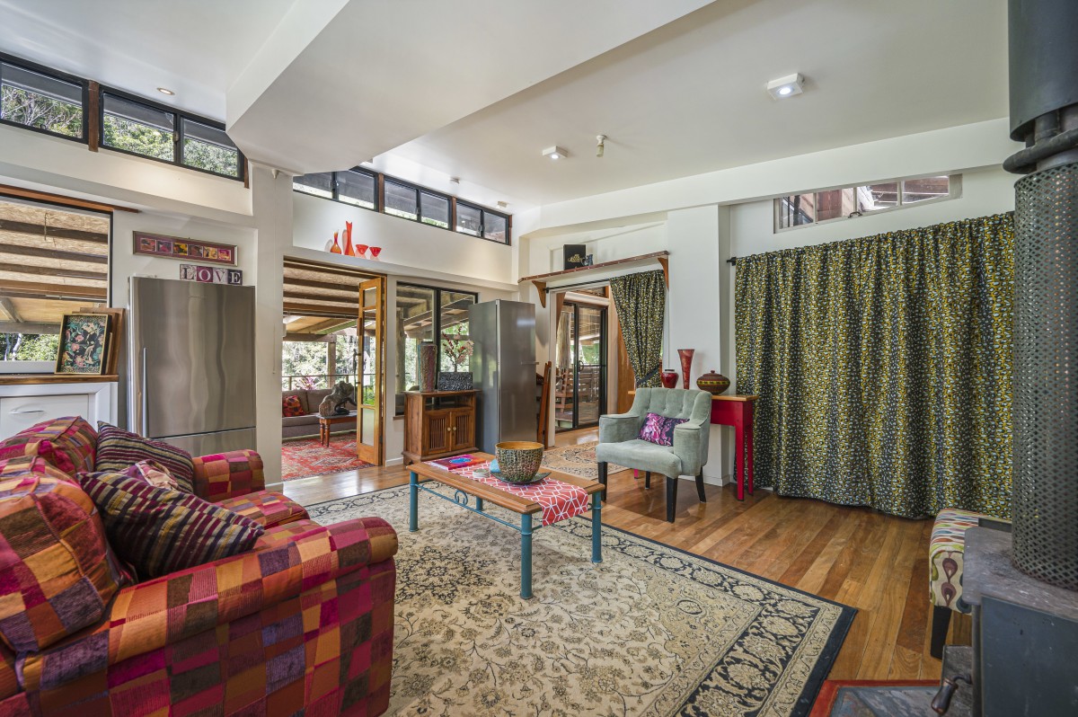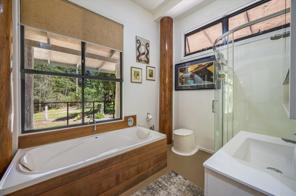 Nestled in the heart of the bush, this enchanting, artistically designed home is washed in dappled light and located beside a babbling creek. Set on a supremely quiet country road the property is just a 25-minute drive from Maleny town centre.