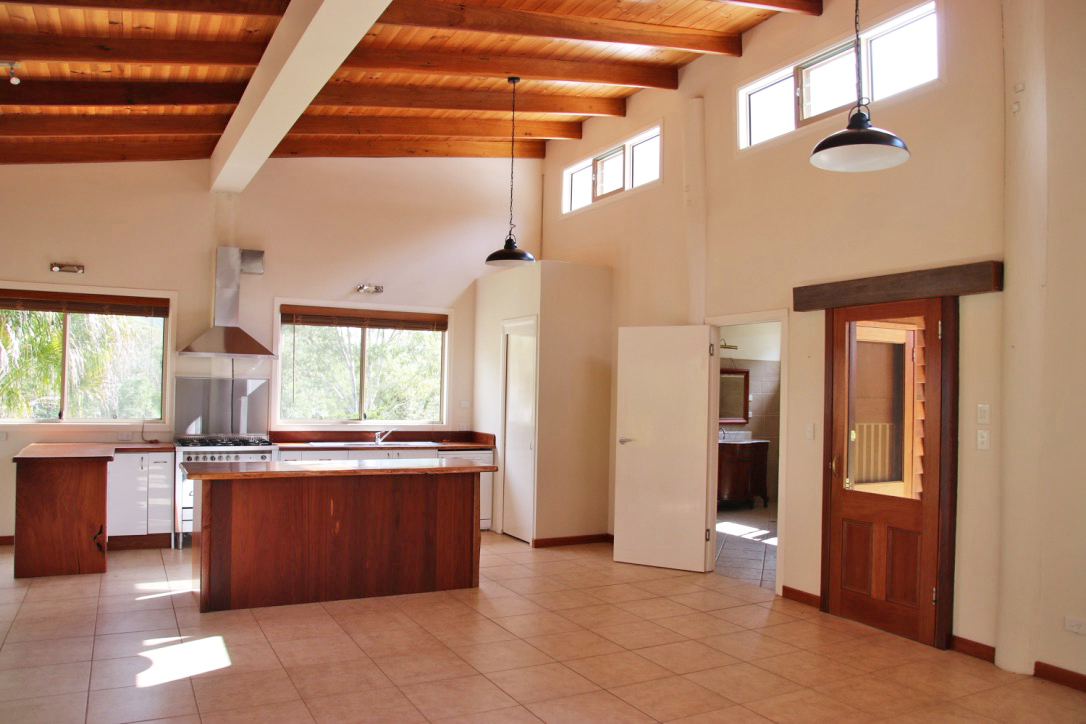 The property continues to deliver on character with the handcrafted Top House which has been lovingly built using hardwood recycled timbers from the old Dicky Beach Surf Club and Campo Cal built in the 1920's and poles and bridge timbers from the Old Maleny and Conondale bridges.