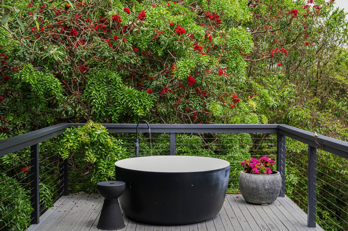 • Outdoor hot-soaking bath overlooking the lush grounds
